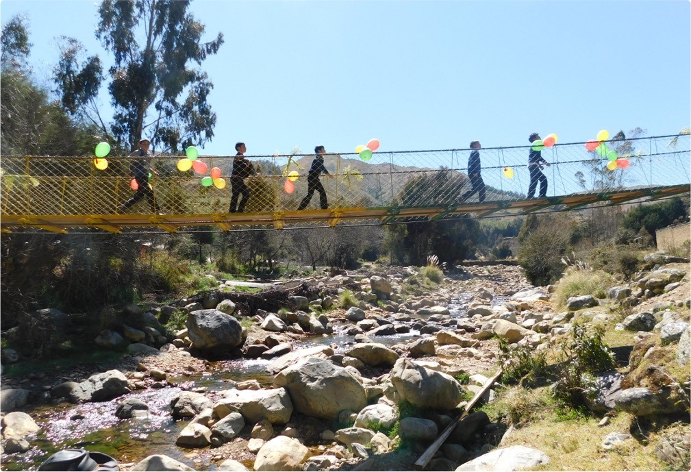Ten volunteers across Michael Baker’s geographies and practices traveled to Bolivia to complete the construction of a 128-foot-long suspension footbridge in Kayarani. Our team worked for seven days to construct the bridge. During this time, we experienced long days of arduous yet rewarding work. At the onset of construction, we faced one of our first challenges: an oversized boulder inside the south abutment. We worked together with limited construction tools to devise a solution to ensure that the bridge cable would not rest atop this boulder, potentially creating slack in the support. We resolved to chip away at the boulder until sufficient space was created between the rock and the cable. This is just one example of how our team overcame construction challenges to complete the construction of the bridge on time.
