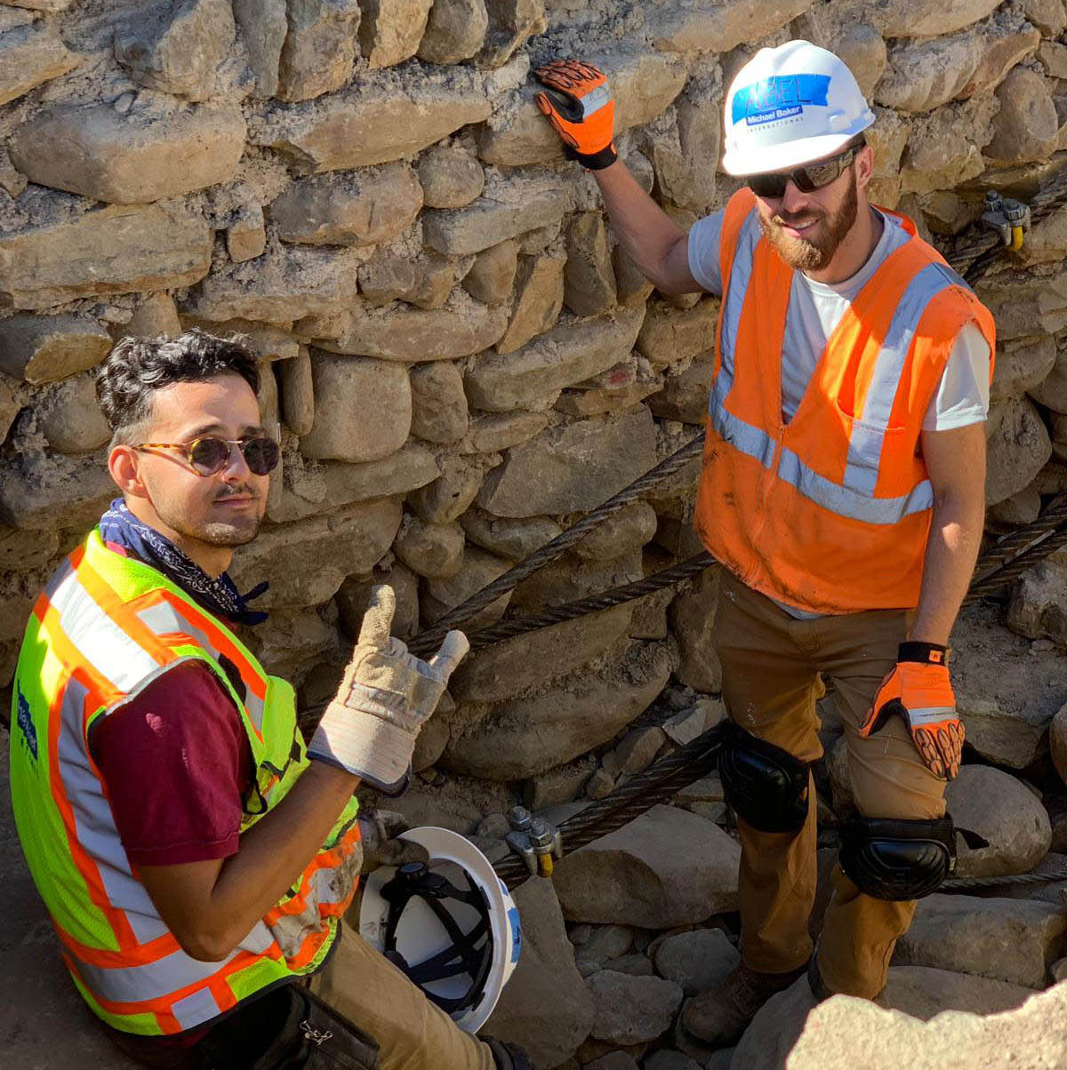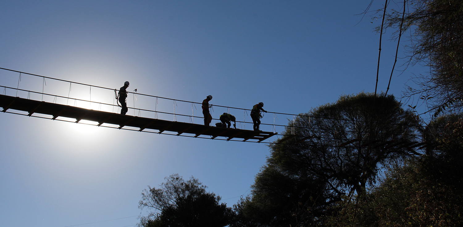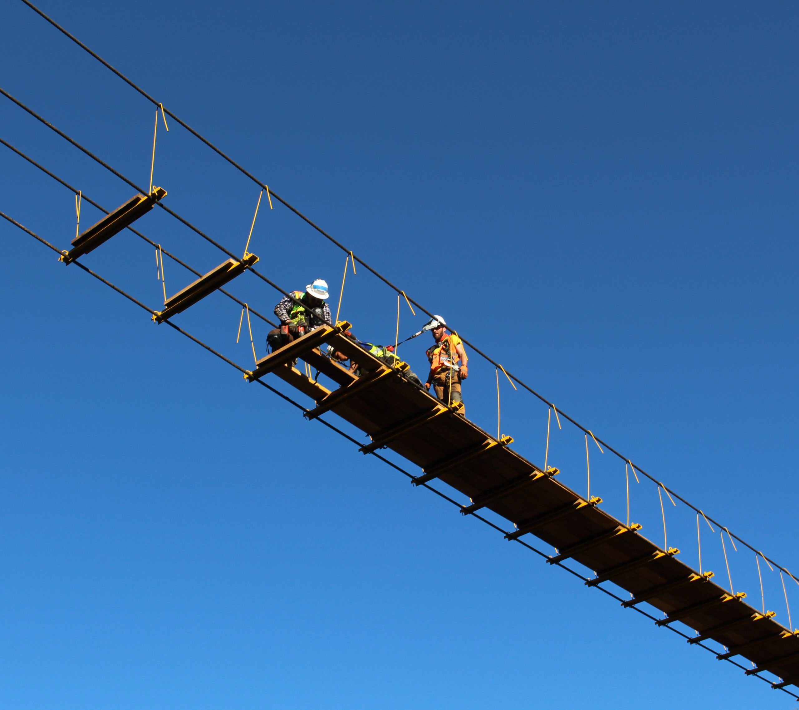The team overcame the initial communication barrier to work as a cohesive unit to move hundreds of rocks, set the sag of the bridge cables, manually bend steel bars, paint and place the cross beams and decking, pour concrete approach slabs, and install protective fencing along both sides of the bridge.