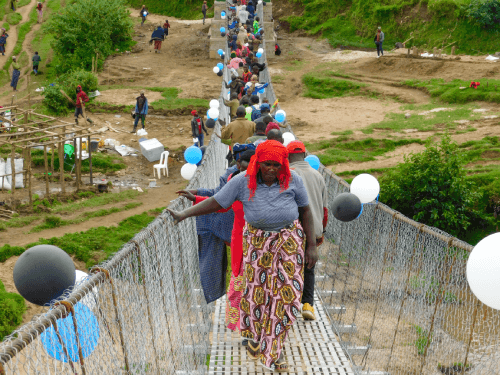 Once the team had put the finishing touches on the Kavumbu Trailbridge, it was time to celebrate. Community members of all ages attended a ribbon-cutting ceremony to mark the official opening of the bridge. Our team had the opportunity to watch residents cross the bridge for the first time and celebrate alongside them.