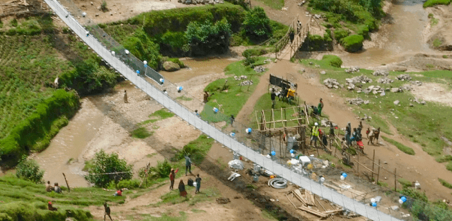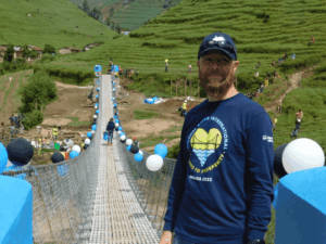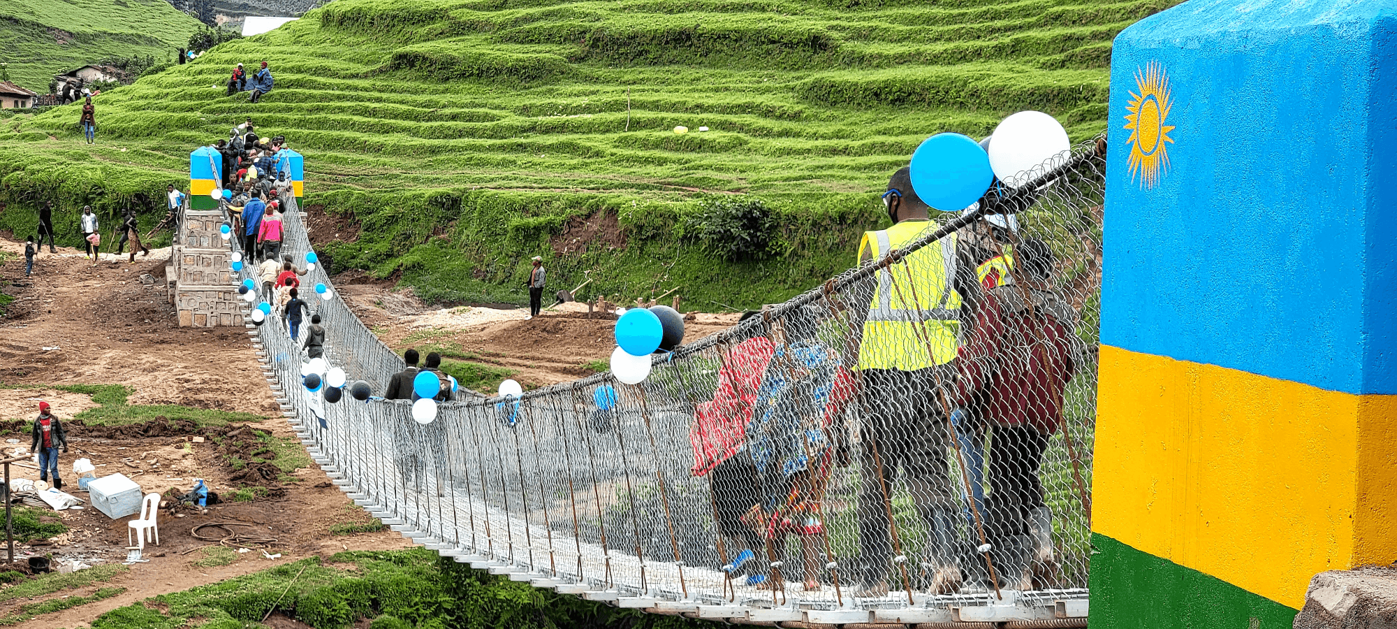 Known as the “Land of a Thousand Hills,” Rwanda is an East African nation of 13.4 million people approximately the size of Massachusetts. Multiple flights and a four-hour drive heading northwest from the capital city of Kigali will bring you to the municipality of Nyabihu – and the site of the Kavumbu Trailbridge.