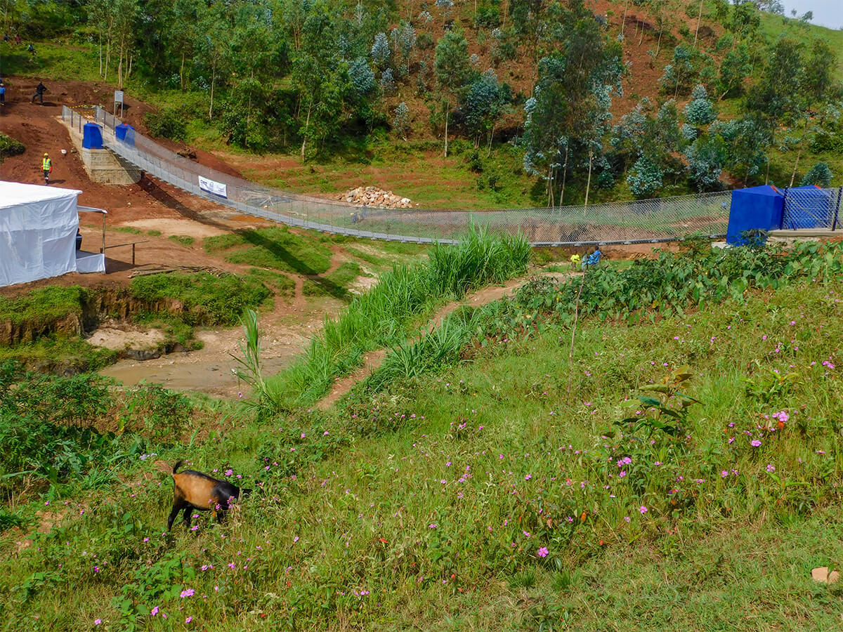 During the rainy seasons, which take place from March to May and October to December, Rwandans experience strong winds and heavy downpours for most of the day. In the remote areas of Rwanda, this weather causes river crossings to become impassible, cutting off communities’ access to critical resources, including schools, health centers and markets. To help local community members overcome these challenges, the nonprofit Bridges to Prosperity (B2P) identified a site in the Rutsiro District of Rwanda—a four-hour drive from the capital city of Kigali—to be the location of the new Kabira 3 trail bridge.