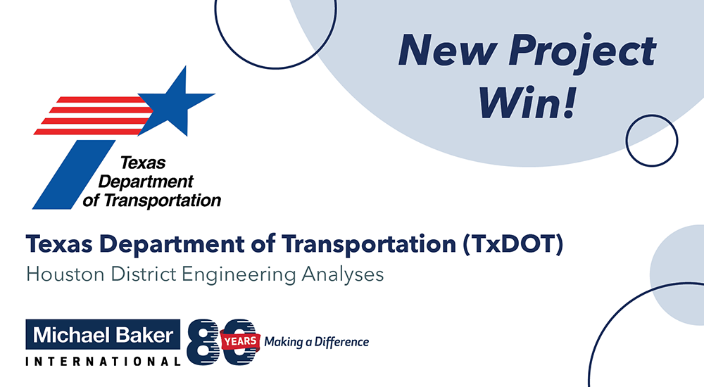 HOUSTON, TX. (May 20, 2020) – Michael Baker International, a global leader in engineering, planning and consulting services celebrating 80 Years of Making a Difference, was selected for a $5M contract with the Texas Department of Transportation (TxDOT) for hydrologic and hydraulic modeling, drainage design services and stream bank stabilization/restoration design services across the Houston District. Work is expected to begin in June 2020 and continue for a period of five years, with specific tasks assigned throughout the contract duration.