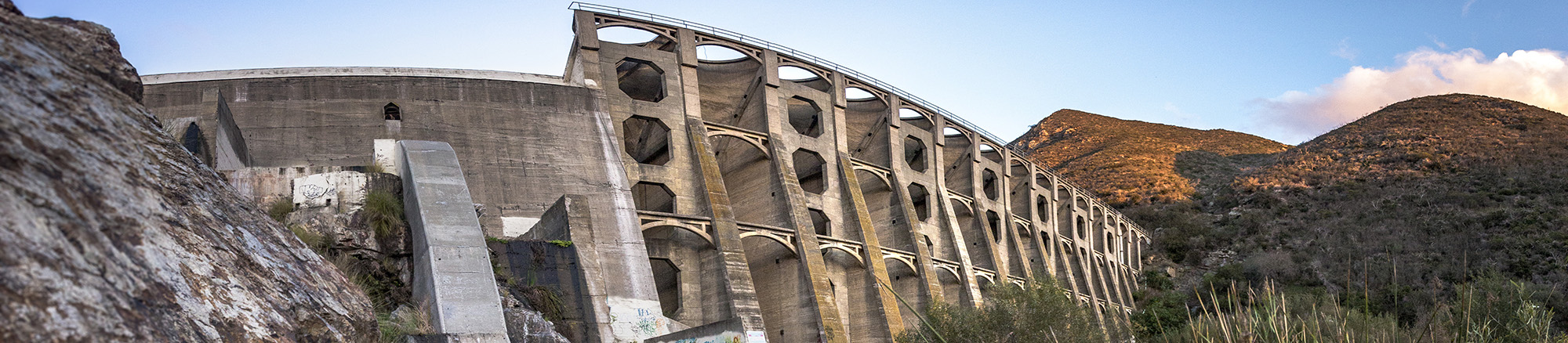Lake Hodges Dam is a multiple-arch dam that sits on the San Dieguito River, located 31 miles north of San Diego, California. It was originally commissioned by the Volcan Water Company and purchased by the City of San Diego in 1925. The dam has 1,234 surface acres, a maximum water depth of 115 feet and 27 shoreline miles.