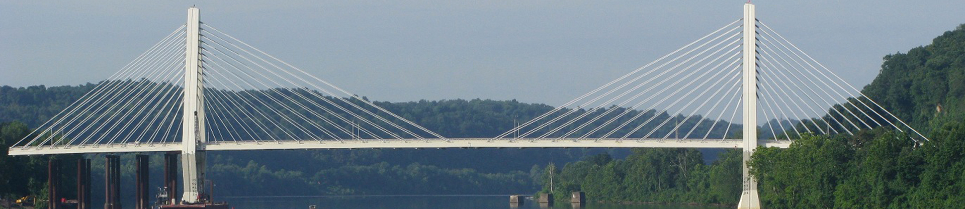 The Pomeroy-Mason Bridge is a concrete, cast-in-place cable-stayed bridge with distinctive delta-shaped towers that replaced an existing two-lane steel truss bridge on U.S. Route 33 over the Ohio River in Meigs County, Ohio. The cable-stayed portion of the bridge is more than 1,852-feet-long, with a 675-foot-wide main span and 244-foot end spans. This new bridge provides a link between two cities – Pomeroy, Ohio, and Mason, West Virginia.