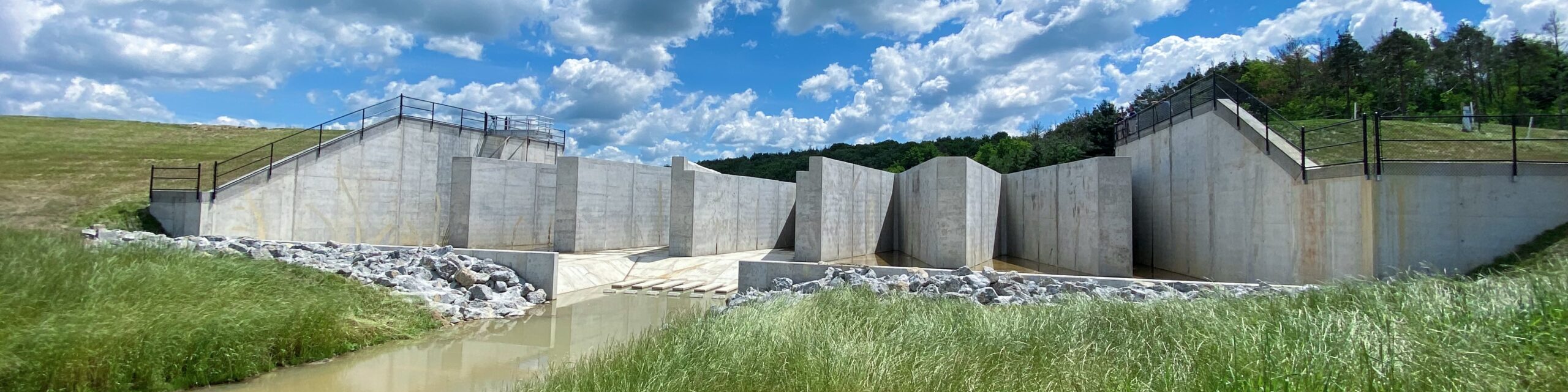 Kyle Lake Dam was constructed in 1910 and creates Kyle Lake, a recreational facility. Michael Baker evaluated the dam’s spillway capacity and overtopping protection during the design event and determined that an ACB protection system was most cost-effective.
