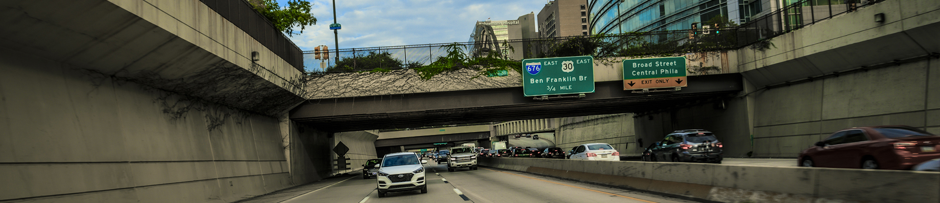 The newly-designed I-676 is a critical east-west arterial route through Center City that features four depressed lanes for high-speed traffic, six local lanes and 17 cross-street bridges. Award-winning landscaping, decorative noise walls and other “good neighbor” elements enhance the visual appeal of the urban expressway.